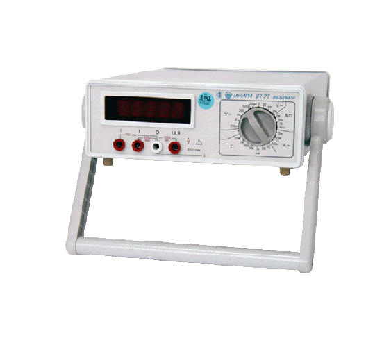 Вольтметр В7-77 (вольтметр универсальный) имеет оптимальное соотношение цена/качество, содержит полный набор функций вольтметра среднего класса и предназначен для измерения постоянного и переменного напряжения и тока (измерение тока до 10 А), сопротивления постоянному току, а также для тестирования полупроводниковых элементов и проверки электрических цепей на короткое замыкание.