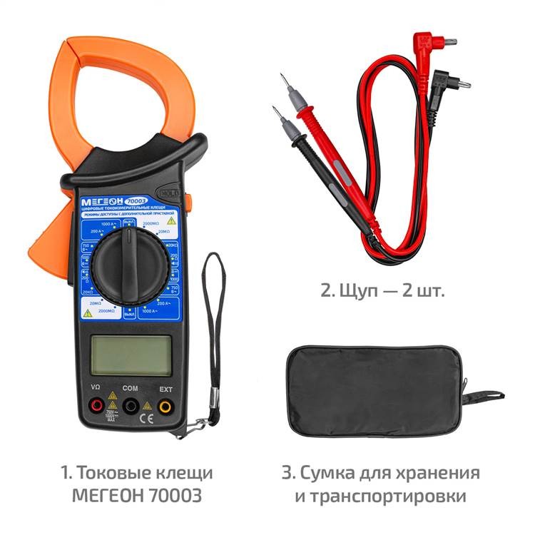 Цифровые токоизмерительные клещи МЕГЕОН 70003 представляют собой высокоточный инструмент для измерения переменного тока. Они обладают максимальным измеряемым переменным током в 1000А и точностью измерения ±3,0%.