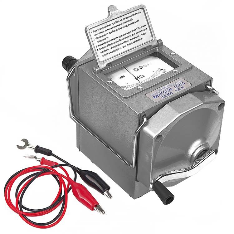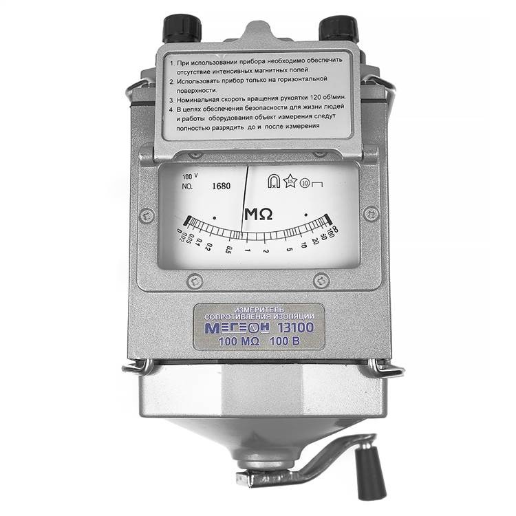 Мегаомметр МЕГЕОН 13100 предназначен для измерения сопротивления изоляции. Он пригодится Вам для измерения сопротивления различного бытового оборудования (электрическое оборудование, кабели, трансформаторы, средства телекоммуникации) и прочего оборудования. Благодаря тому, что прибор имеет широкий диапазон измерений, мегаомметр МЕГЕОН 13100 используется в самых различных отраслях промышленности, ремонтных мастерских и не только. Для достижения максимально точных показаний необходимо учитывать показатели влажности воздуха и температуры. Эксплуатация прибора проста и понятна. Достаточно подлючить щупы с зажимами типа "крокодил" к исследуемому объекту и начать вращать генератор за рукоятку. Прибор укажет измеренное значение сопротивления изоляции. Изделие станет незаменимым помощником специалистов при работе с электрооборудованием и комплектующими.
