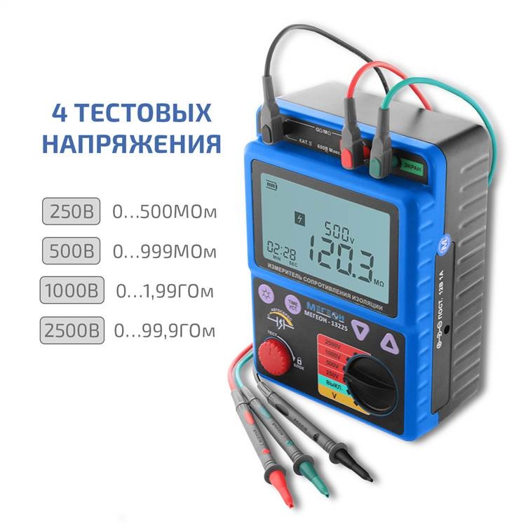 Важным преимуществом данного прибора является его двойная изоляция, которая обеспечивает безопасность пользователя и защиту от поражения электрическим током. Кроме того, мегаометр МЕГЕОН 13225 внесен в государственный реестр средств измерений и поверяется каждые два года, что значительно сокращает затраты на обслуживание прибора.
