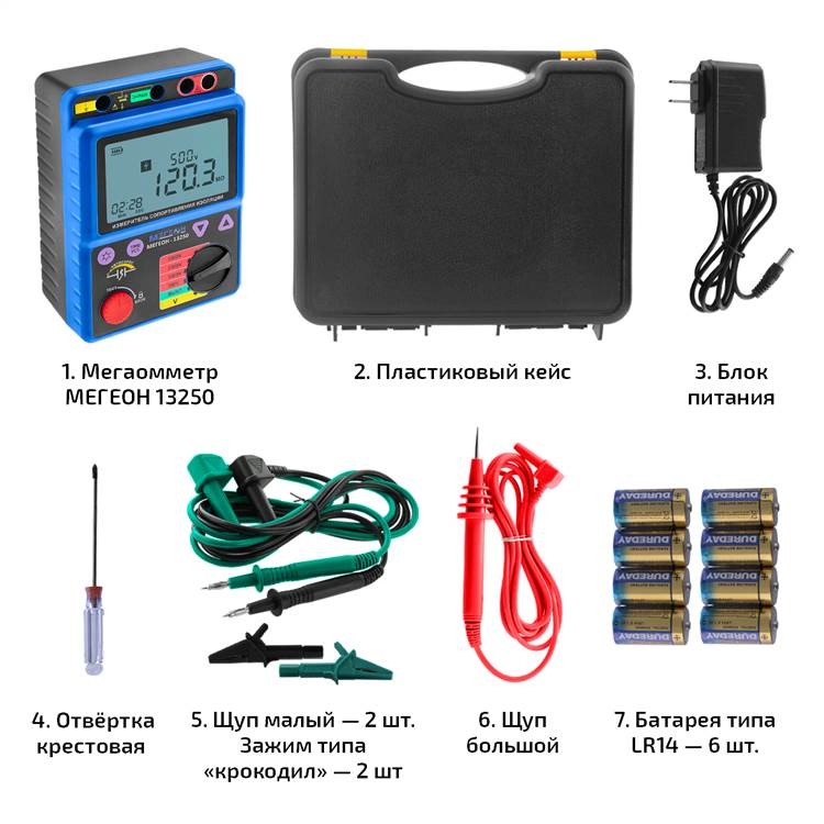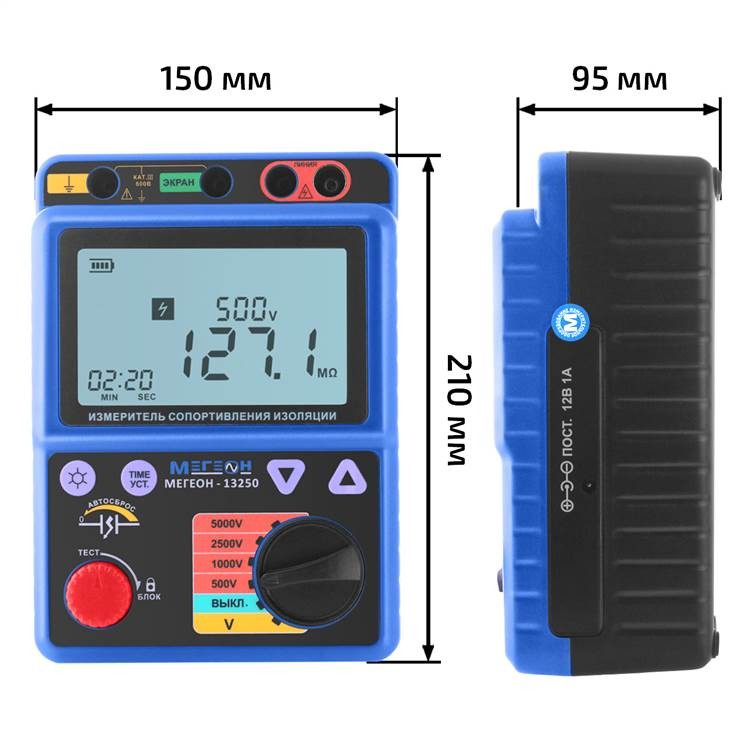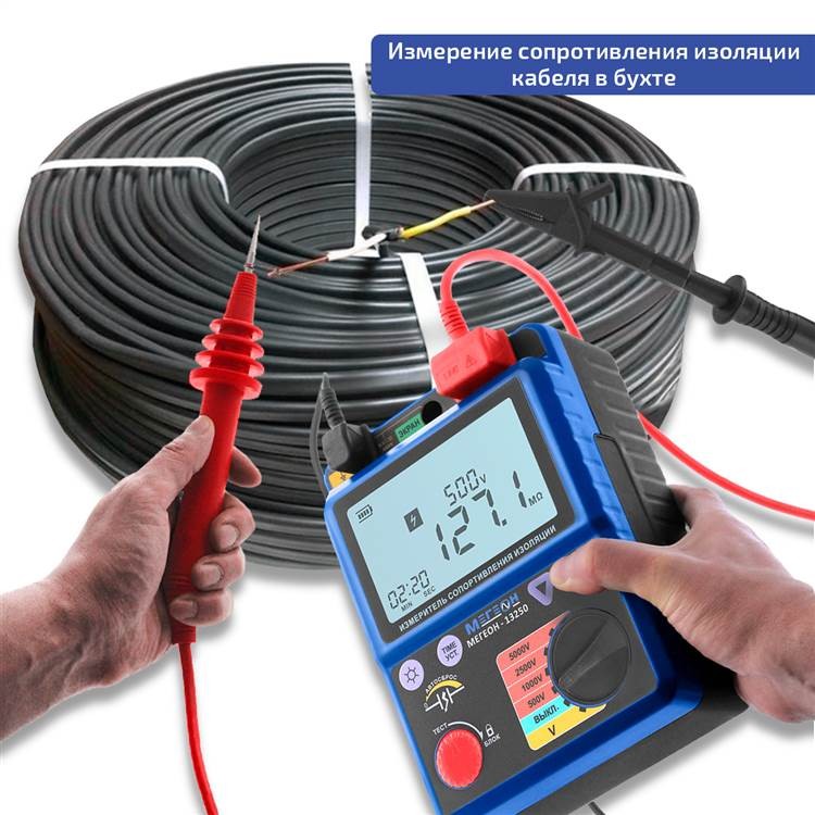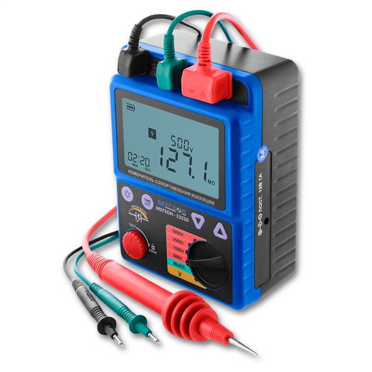 Измеритель сопротивления изоляции или, как его еще называют, мегаомметр МЕГЕОН 13250 – это высокоточный и надежный инструмент для проверки состояния электрооборудования и контроля качества изоляции. Благодаря широкому диапазону измерения сопротивления от 0 до 1000 гигаомов, этот мегаомметр идеально подходит для проверки изоляции кабелей и проводов с высоким сопротивлением.