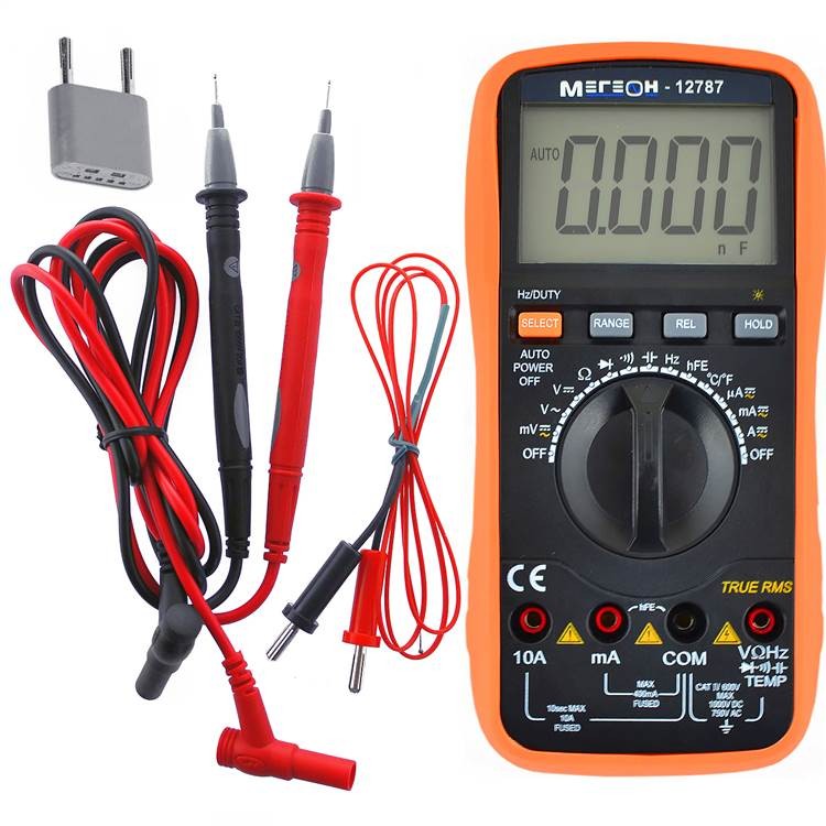 С помощью МЕГЕОН 12787 можно измерять постоянное и переменное напряжения до 1000 и 750 вольт соответственно, постоянный и переменный ток до 10 ампер, сопротивление в диапазоне от 0,1 ома до 40 мегаомов, а также температуру с помощью специального датчика.Кроме того, прибор поддерживает относительные измерения и измерение скважности.