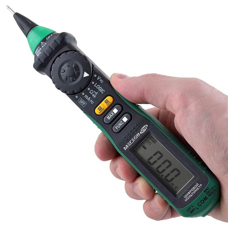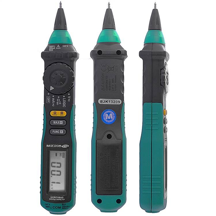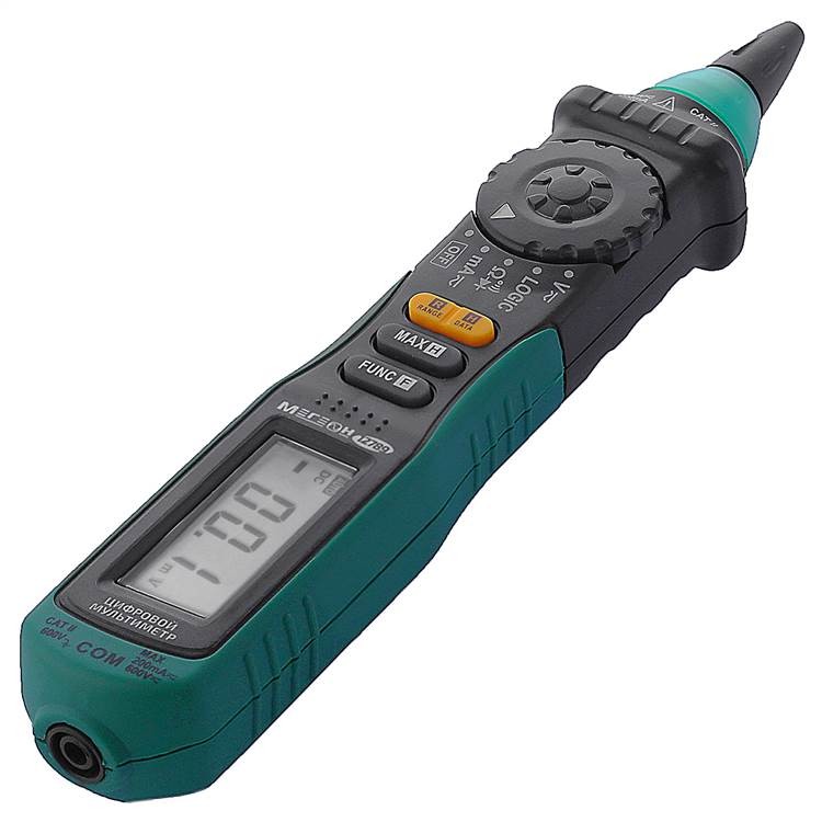 Мультиметр цифровой типа “ручка” Мегеон 12789 представляет собой компактный, удобный и точный измерительный прибор, предназначенный для проведения широкого спектра измерений электрических параметров. Устройство имеет корпус в виде ручки, благодаря чему его удобно носить с собой и использовать в различных условиях.