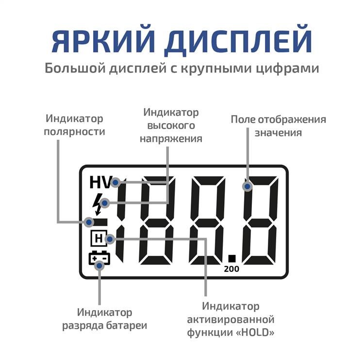 Одним из преимуществ мультиметра МЕГЕОН MY64 является индикатор разряда батареи. Он своевременно предупреждает о необходимости замены элементов питания, что гарантирует стабильность и точность измерений.
