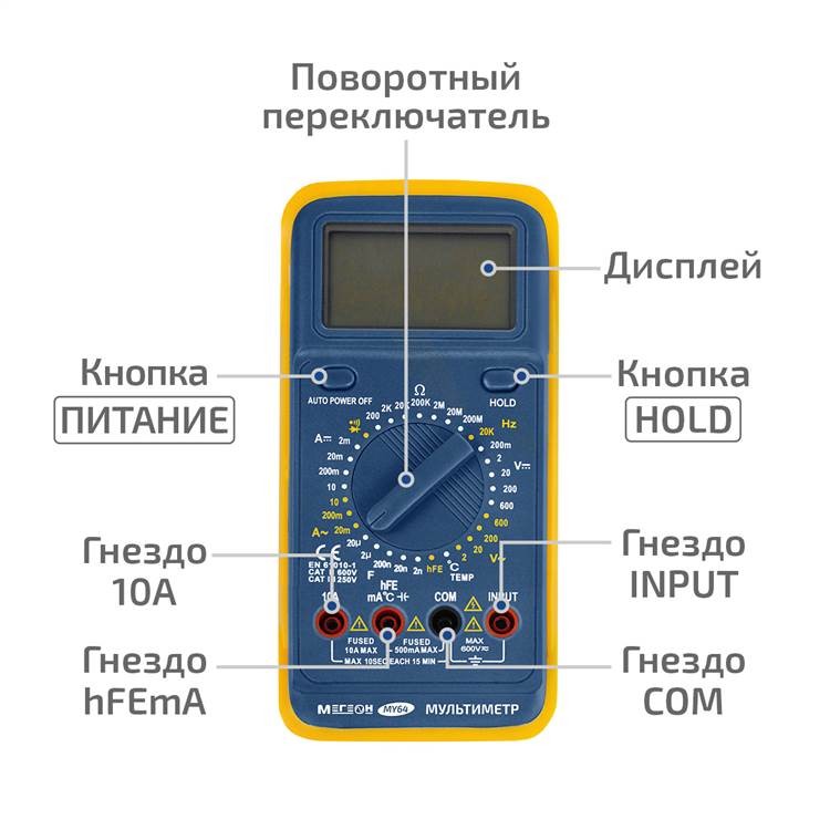 Мультиметр МЕГЕОН MY64 представляет собой незаменимый инструмент для профессиональных электриков и тех, кто просто занимается ремонтом электрооборудования. Главной особенностью данного мультиметра является большой контрастный дисплей, который обеспечивает легкость чтения показаний даже в условиях плохой освещенности.