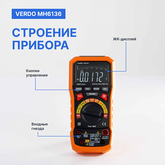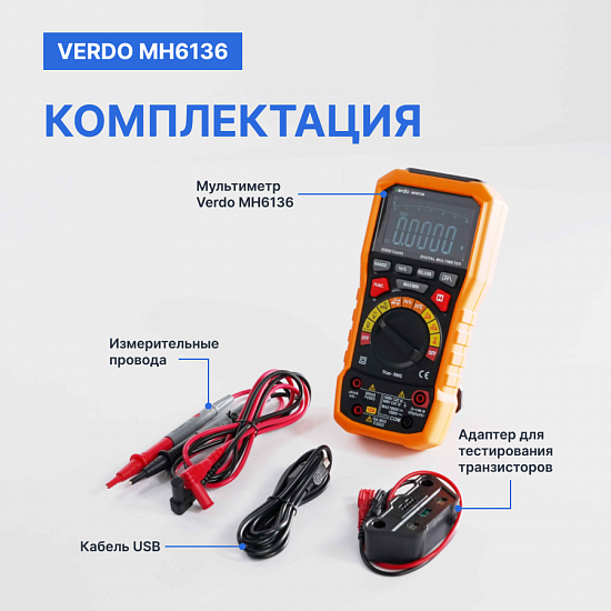 Мультиметр VERDO MH6136 – это ручной цифровой мультиметр с функцией отображения истинного среднеквадратичного значения (TrueRMS), большим многострочным инверсным ЖК-дисплеем с аналоговой шкалой, что облегчает считывание показаний. Передача измеренных значений величин в ПО обработки.