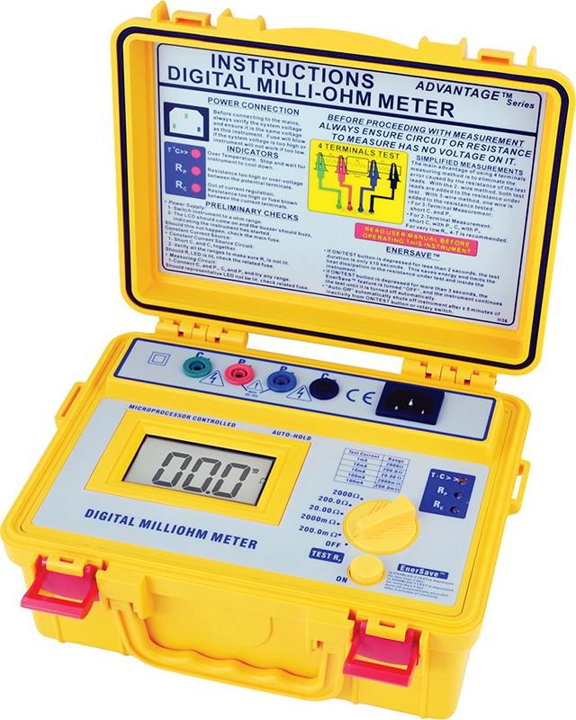 - Миллиомметр: измерение сопротивления низкоомных цепей и контактов присоединения (± 0,5 % базов.)