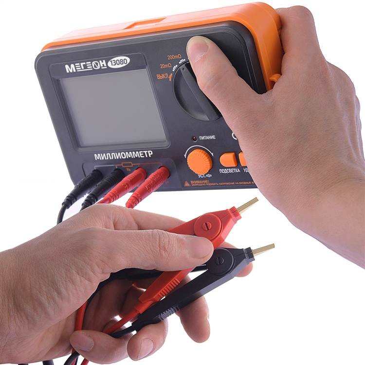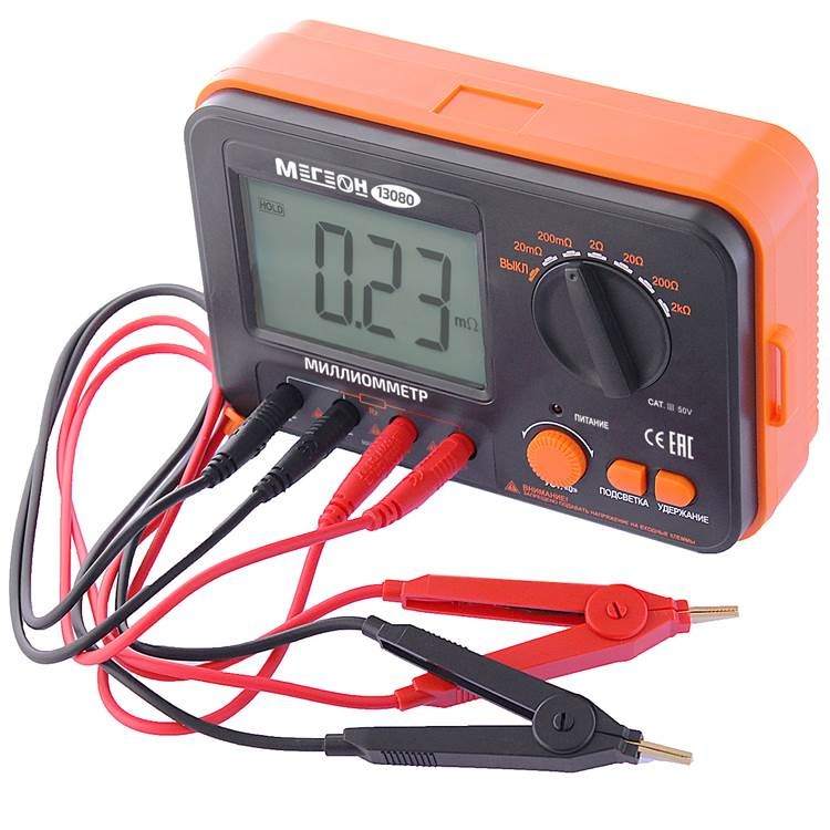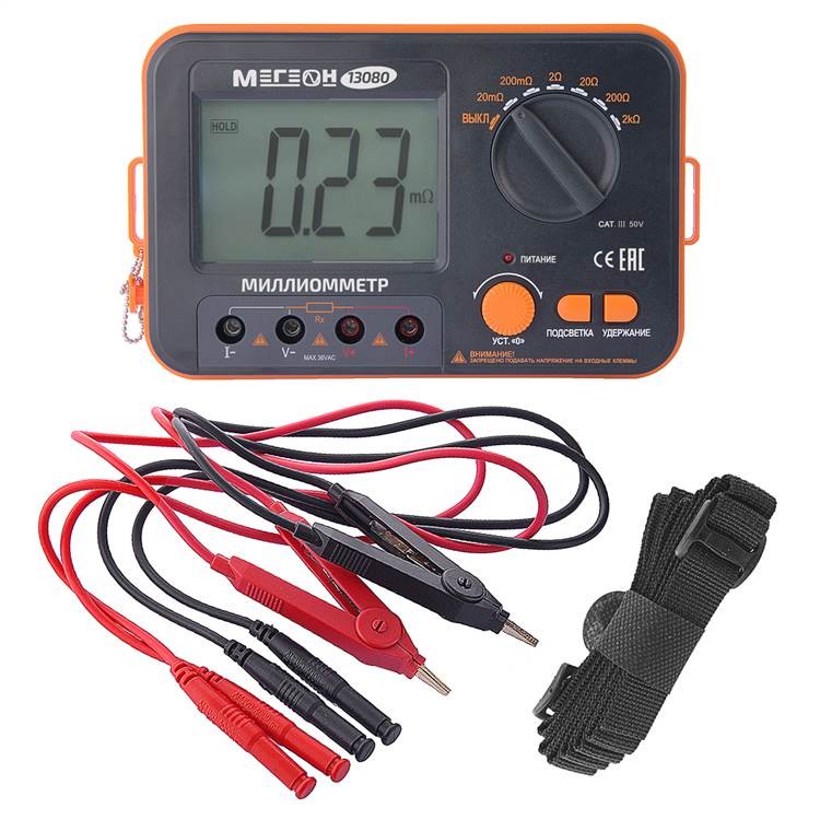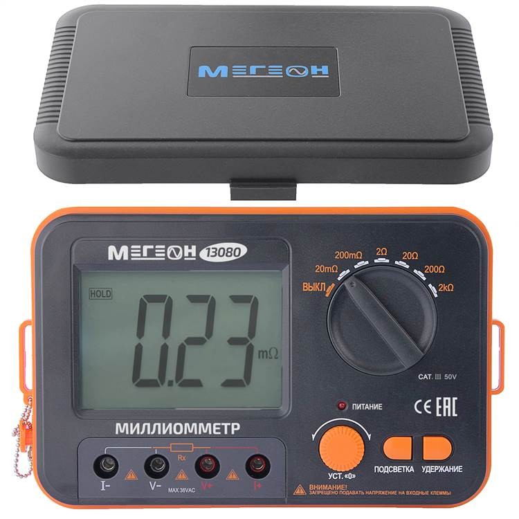 - Диапазон измерений 0,01 мОм ... 2 кОм