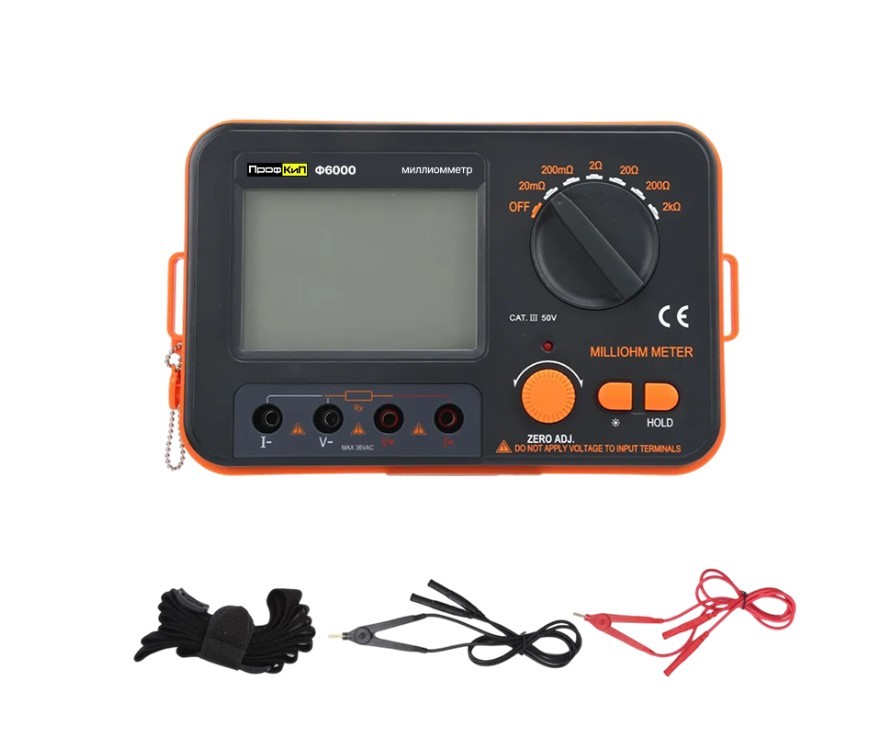 - Диапазон измерения сопротивления: 0,01 мОм - 2кОм (6 пределов)