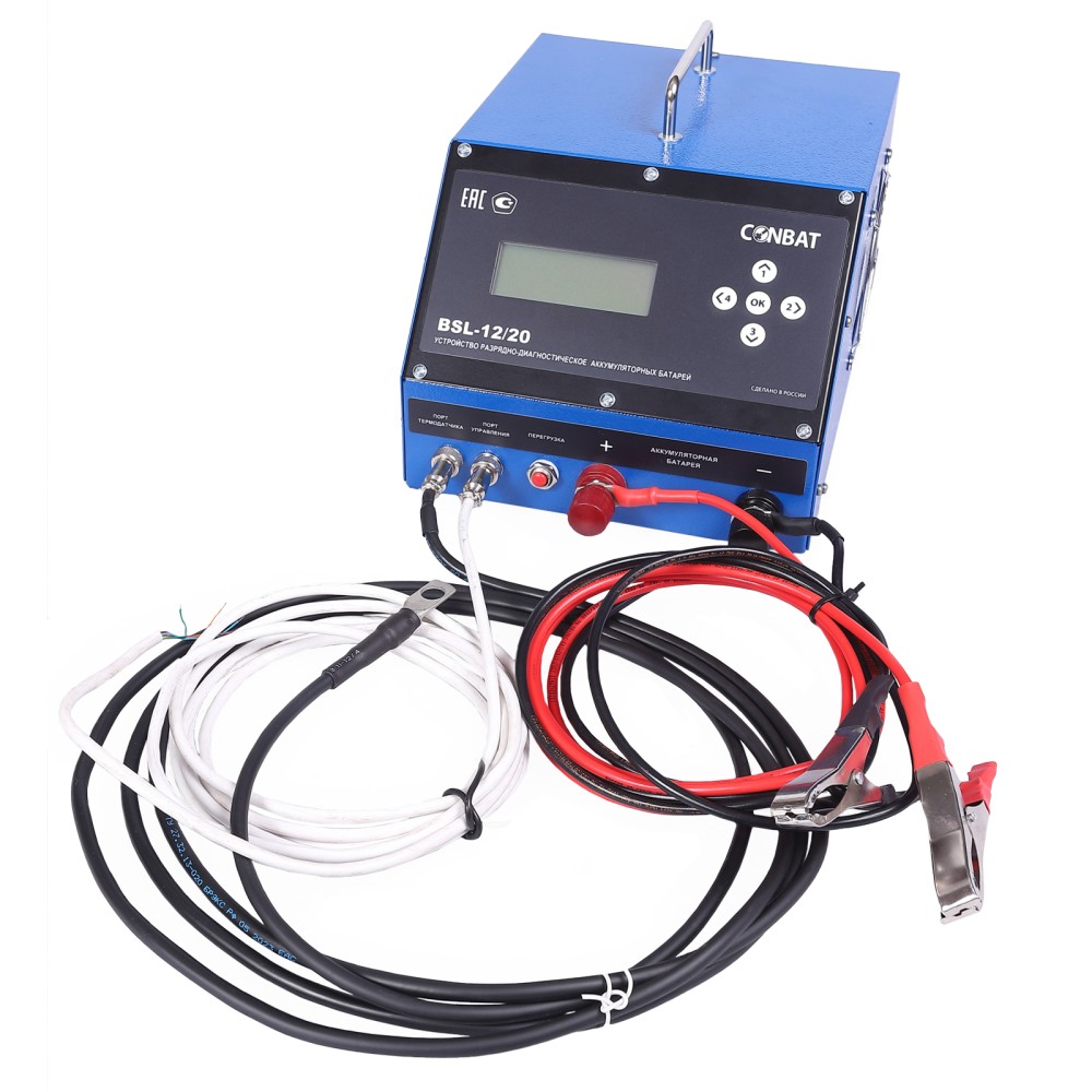 Разрядное устройство (тестер емкости) аккумуляторных батарей CONBAT BSL-12/20 служит для проведения испытания любых типов аккумуляторных батарей (свинцовые, никель-кадмиевые, щелочные, литиевые) на емкость методом разряда стабилизированным током с контролем напряжения и температуры.
