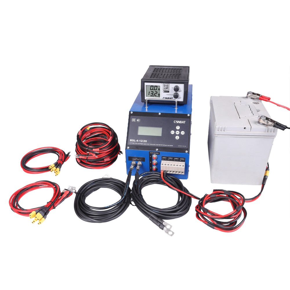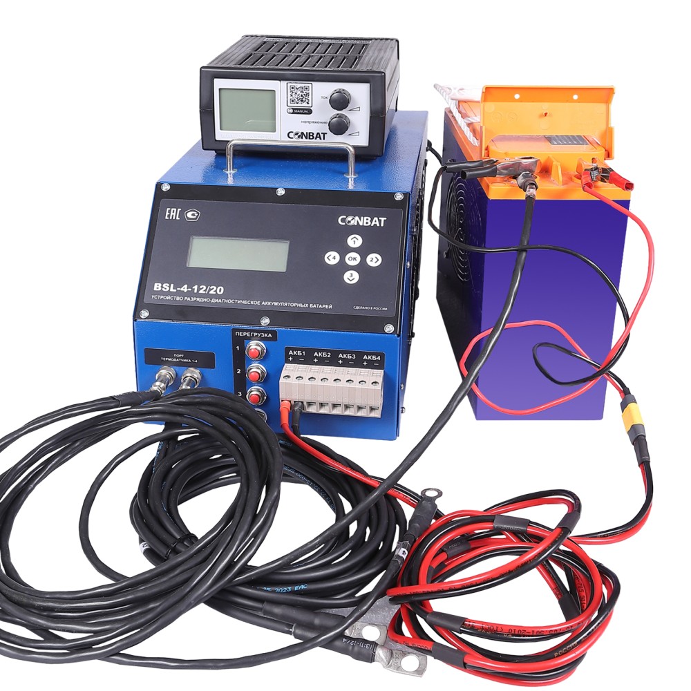 Разрядное устройство (тестер емкости) аккумуляторных батарей CONBAT (модель BSL-4-12/20) служит для проведения испытания любых типов аккумуляторных батарей (свинцовые, никель-кадмиевые, щелочные, литиевые) на емкость методом разряда стабилизированным током с контролем напряжения и температуры.