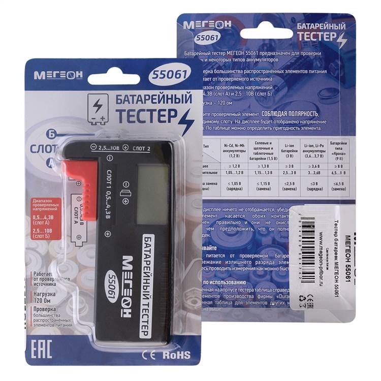 Тестер батареек Мегеон 55061 - это незаменимый инструмент для проверки и определения состояния большинства распространенных элементов питания. Он позволяет быстро и легко проверить напряжение, ток и другие параметры батареек, что может быть полезно для предотвращения неисправностей в электронных устройствах.