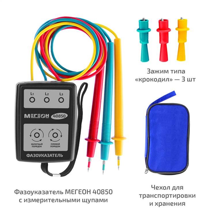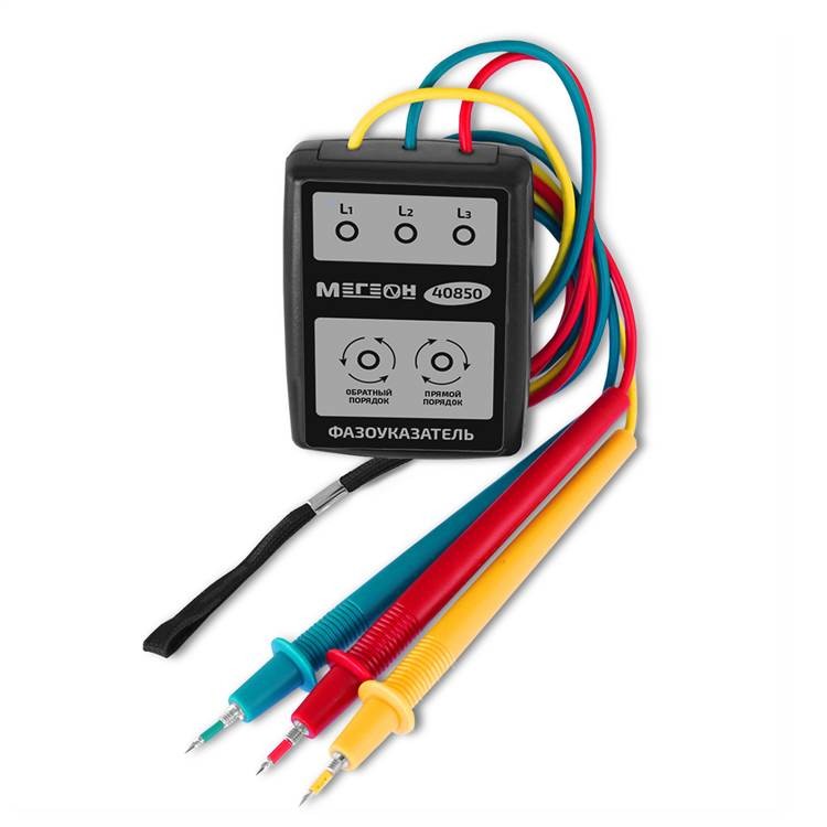 Фазоуказатель Мегеон 40850 - это универсальный инструмент для проверки напряжения и последовательности фаз в электрических сетях. С его помощью можно быстро и точно определить наличие напряжения, а также порядок следования фаз.