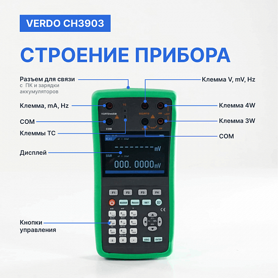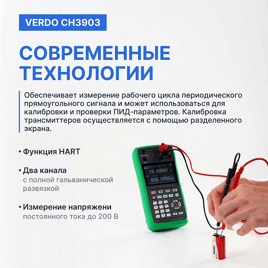 Калибратор VERDO CH3903 обладает высокой точностью до 0,008% и сочетает в себе широкий функционал: