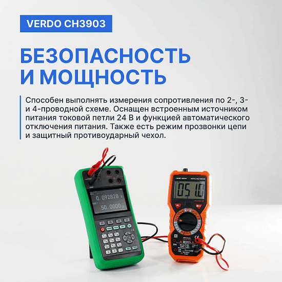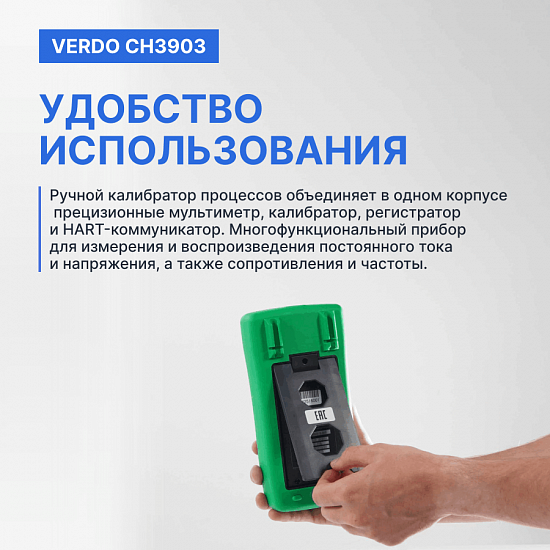 Благодаря своим характеристикам портативный калибратор процессов VERDO CH3903 обеспечивают удобство использования в различных условиях.