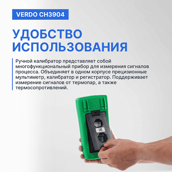 Благодаря своим характеристикам портативный калибратор процессов VERDO CH3904 обеспечивают удобство использования в различных условиях.