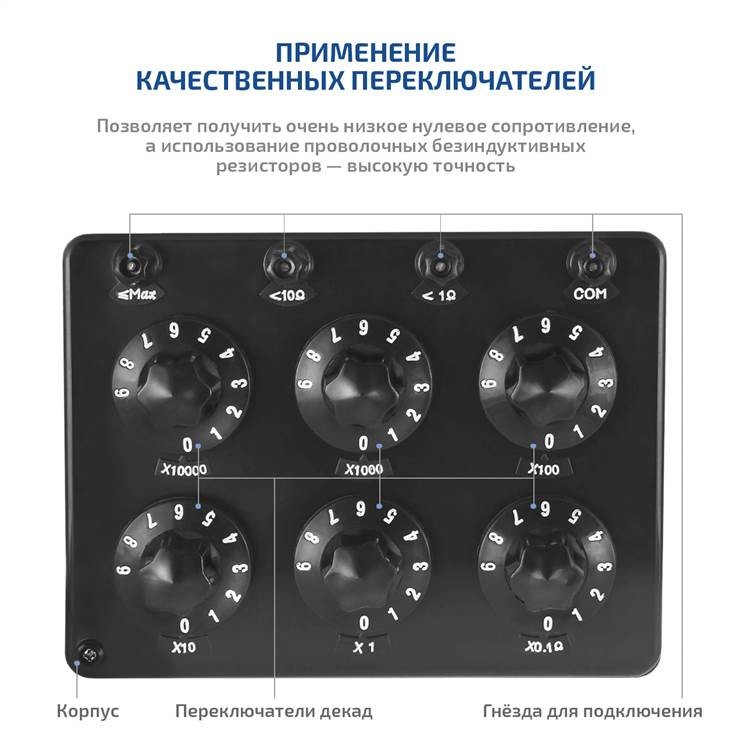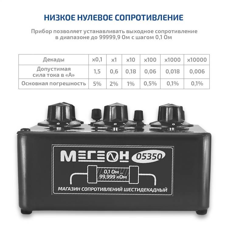 Одним из преимуществ магазина сопротивления МЕГЕОН 05350 является его высокая надежность. Благодаря качественным материалам и продуманной конструкции, он способен выдерживать интенсивное использование и сохранять свою точность на протяжении длительного времени.