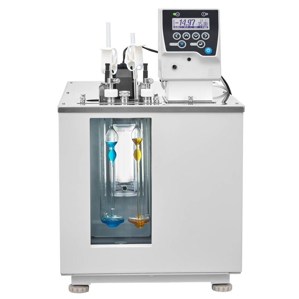 Термостат КРИО‑ВИС‑Т‑03 с однокамерным стеклопакетом, исключающим запотевание и обмерзание, предназначен для поддержания температуры при определении кинематической вязкости нефтепродуктов стеклянными вискозиметрами в соответствии с ГОСТ 33, ГОСТ Р 53708, ASTM D445, IP 71, ISO 3104 и DIN 51366.