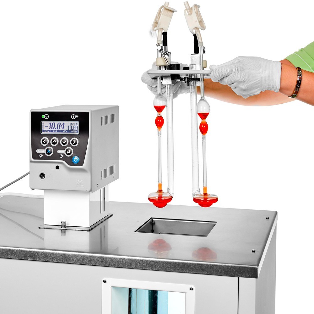 Термостат КРИО‑ВИС‑Т‑05 с двухкамерным стеклопакетом, исключающим запотевание и обмерзание, предназначен для поддержания температуры при определении кинематической вязкости нефтепродуктов стеклянными вискозиметрами в соответствии с ГОСТ 33, ГОСТ Р 53708, ASTM D445, IP 71, ISO 3104 и DIN 51366.