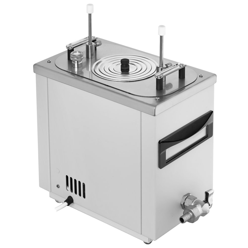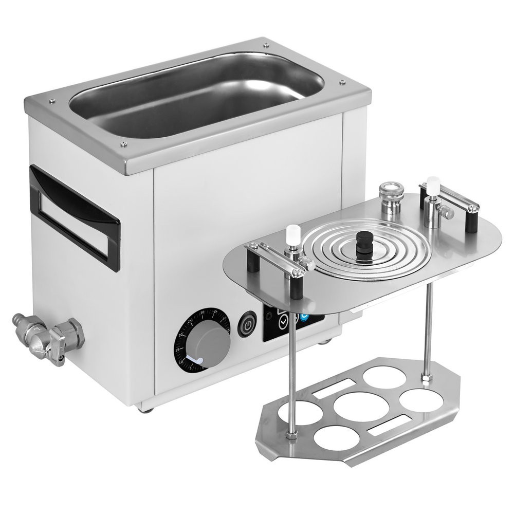 - Система из 5‑ти стальных концентрических колец позволяет уплотнять размещенные в ванне колбы, стаканы и другую лабораторную посуду.