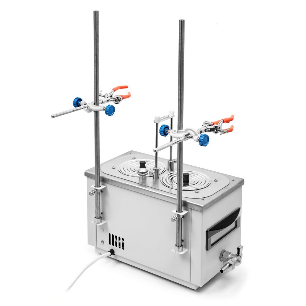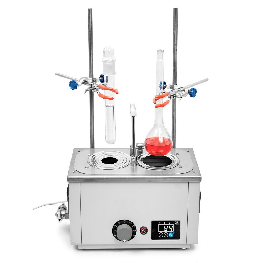 Универсальная баня ЛБ21‑Ш оснащена легко извлекаемой корзиной с подвижным дном для размещения лабораторной посуды различного размера, стальными концентрическими кольцами для ее уплотнения, штативами и лапками с зажимом.
