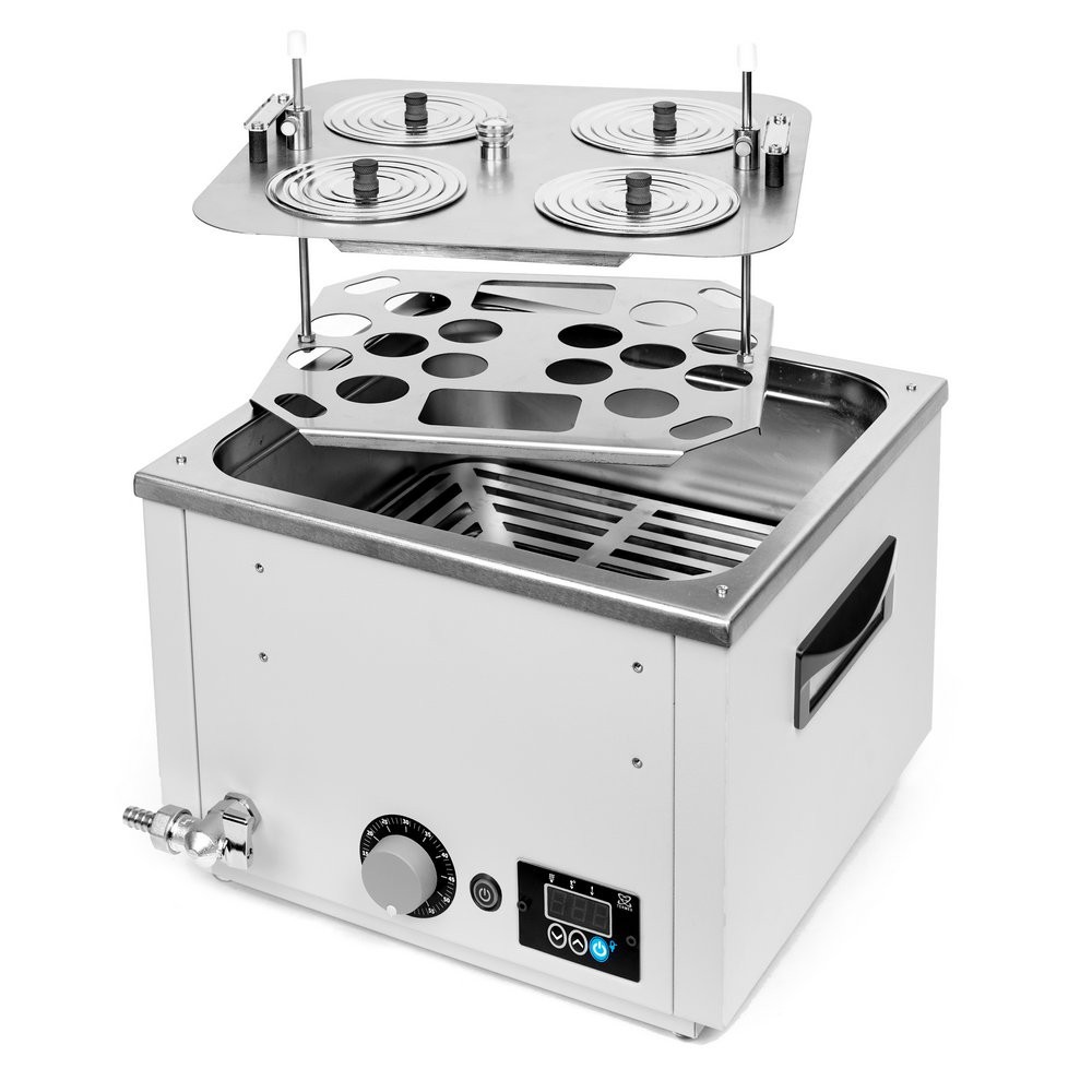 Универсальная баня ЛБ42 оснащена легко извлекаемой корзиной с подвижным дном для размещения лабораторной посуды различного размера и стальными концентрическими кольцами для ее уплотнения.