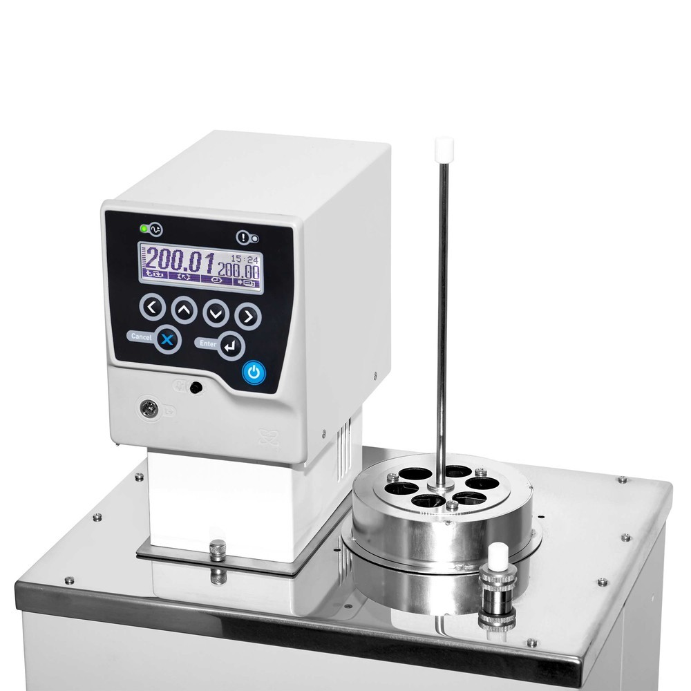 - 3-х ванная конструкция термостата, эффективное перемешивание теплоносителя и его перелив по всему периметру рабочей ванны гарантирует стабильность и однородность температурного поля во всем диапазоне температур регулирования.