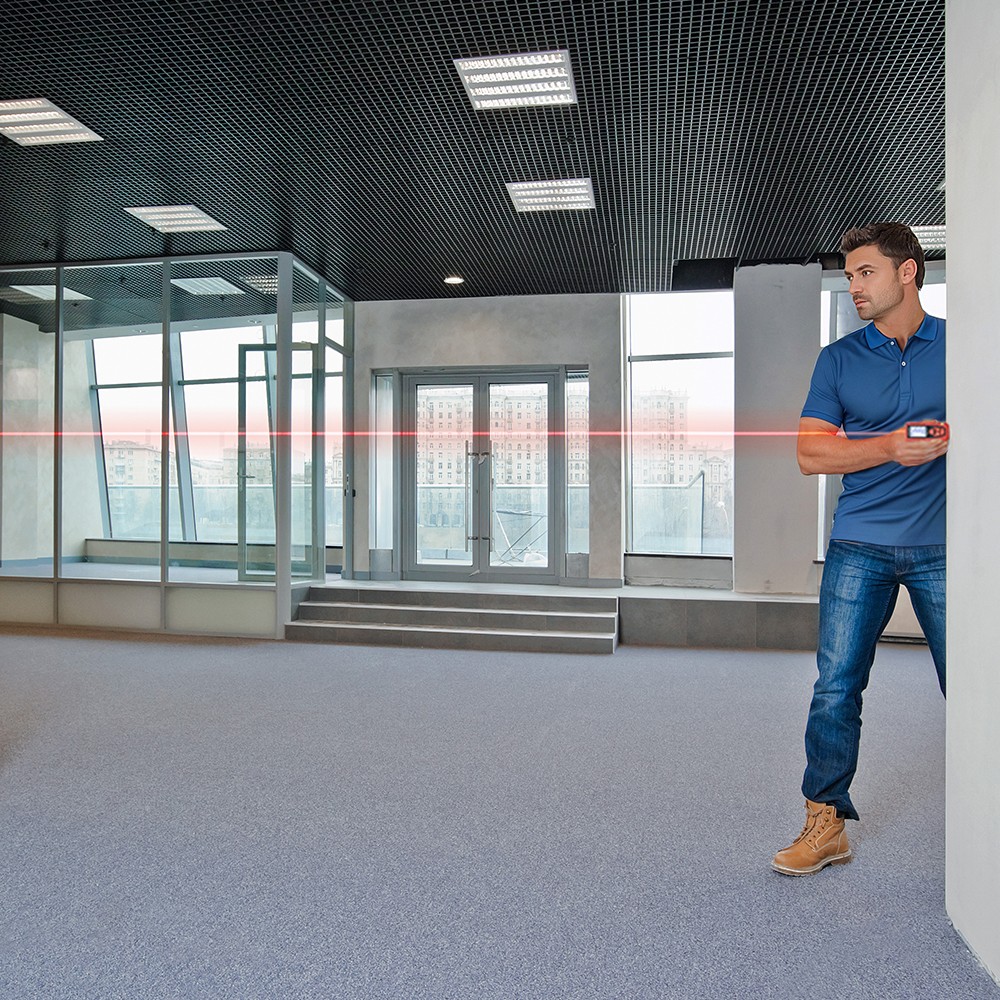 Во время замера расстояния между вертикальными конструкциями (стены, оконные и дверные проемы, колонны) лазерный луч должен располагаться строго горизонтально относительно поверхности измерения. Несоблюдение этого условия ведёт к увеличению погрешности. Пузырьковый уровень, которым оснащён CONDTROL SMART 60, позволяет легко контролировать горизонтальное положение лазерной рулетки, благодаря чему можно получить максимально точные результаты.