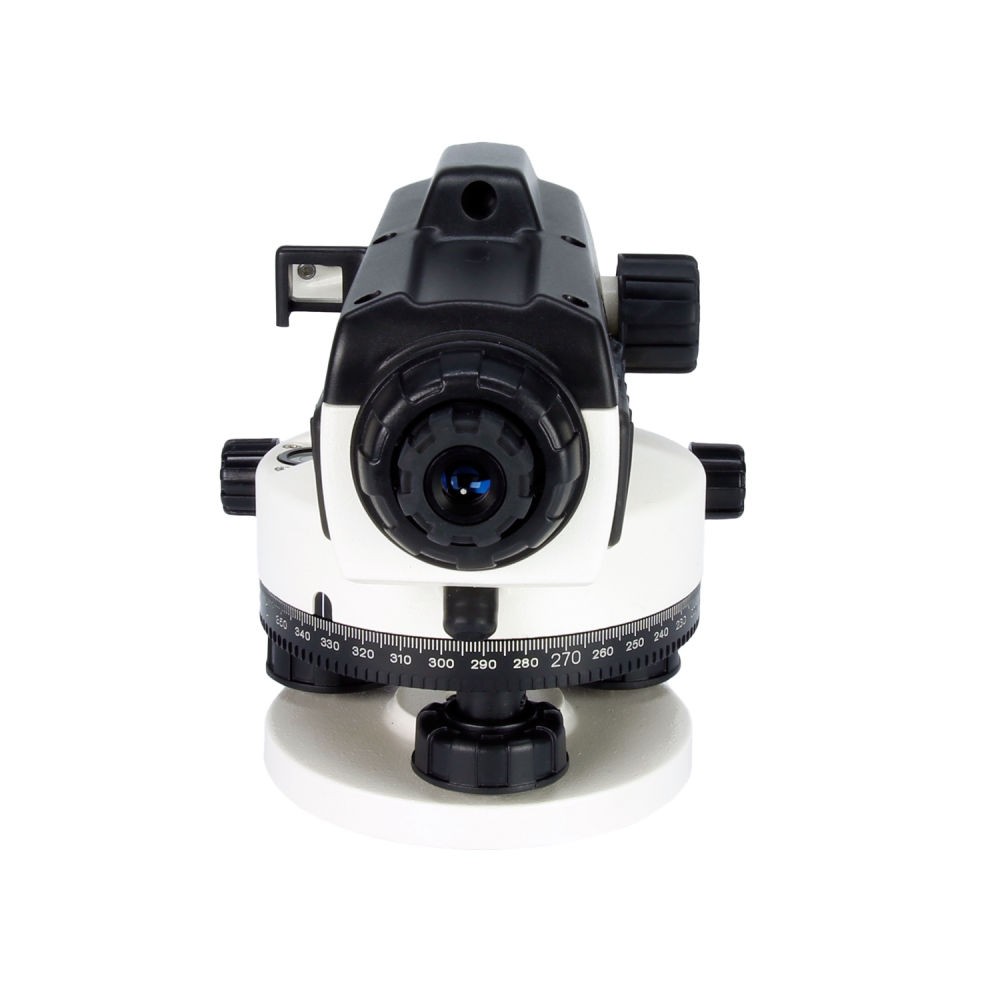 Прицел с макрометрическим винтом обеспечивает быстрое и точное наведение на цель. Винт кремальеры позволяет устранить параллакс между изображениями рейки и визирной сетки. Зрительная труба оснащена регулятором для настройки резкости. Нитяной отвес помогает точно установить прибор над опорной точкой отсчета во время измерения горизонтальных углов.