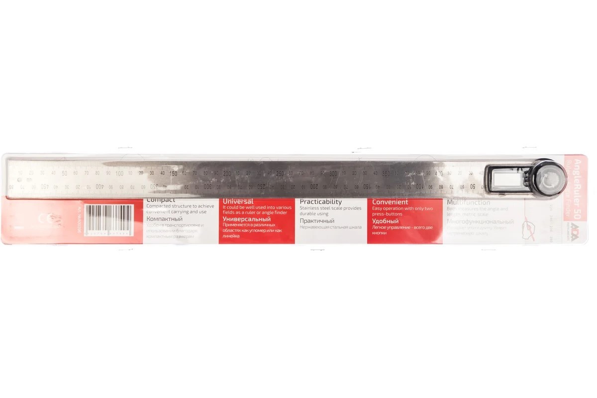 Электронный угломер ADA AngleRuler 50 предназначен для измерения углов. ADA AngleRuler 50 имеет встроенный электронный датчик угла, показания с которого отображаются на встроенном ЖК цифровом дисплее. При любом положении прибора можно установить нулевое значение для измерения относительных углов.