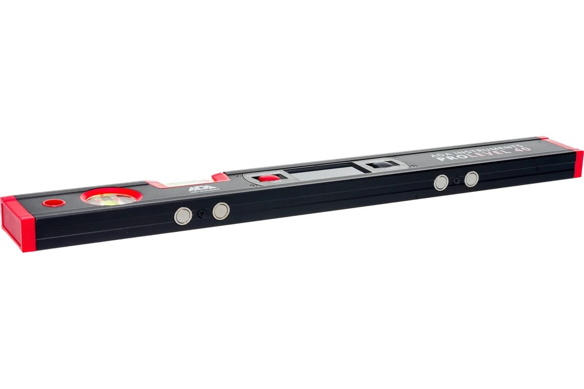 Цифровой уровень ADA ProLevel 40 для измерения углов наклона деталей и плоскостей. Удобно читаемый цифровой электронный дисплей отображает отклонение от горизонтали/вертикали, получая данные с встроенного датчика уклона (инклинометра).