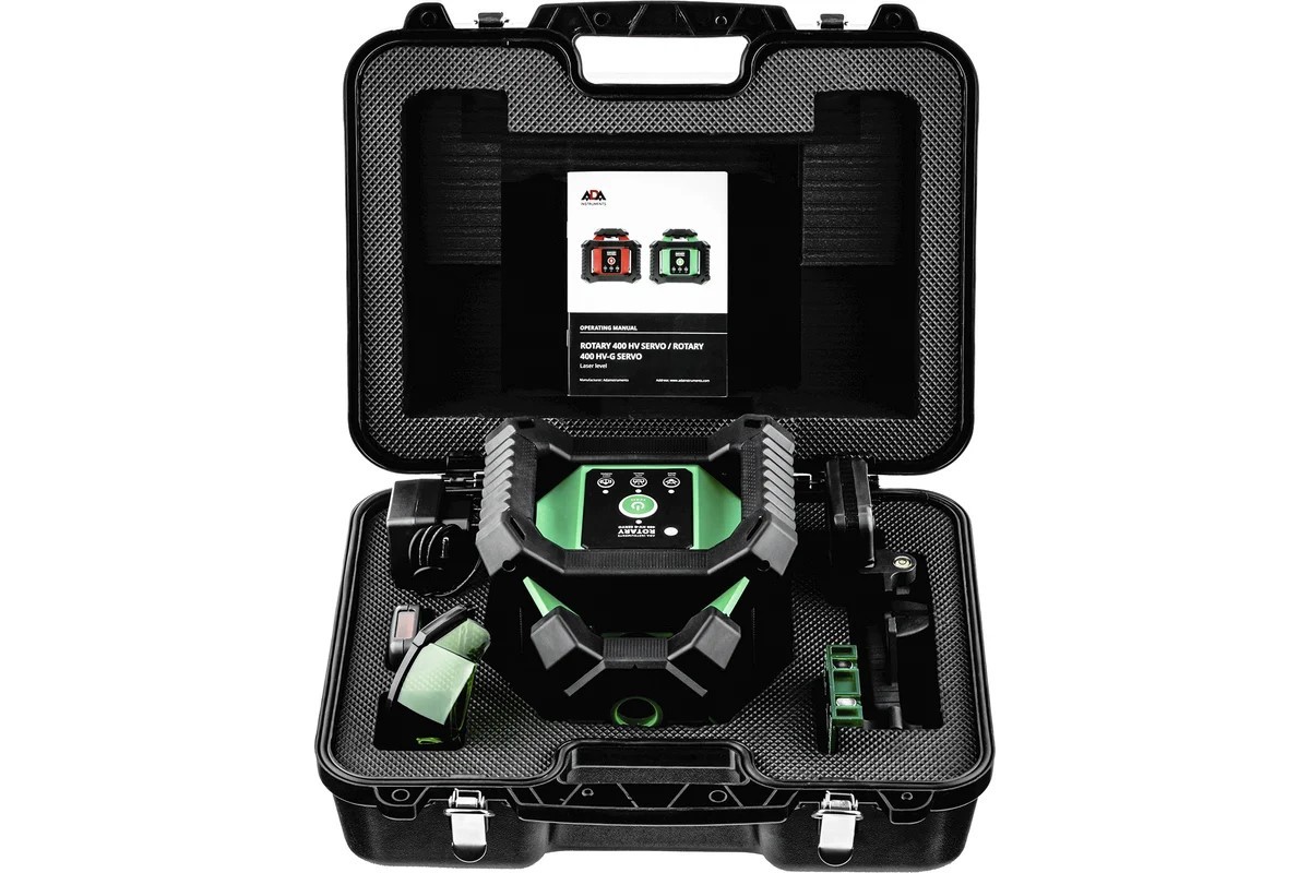 Лазерный нивелир ADA ROTARY 400 HV-G SERVO используется для прокладки инженерных коммуникаций, разметки полов и стен, установки потолочных и вентиляционных систем, при проведении планировочных работ, разметки криволинейных поверхностей, проведению отделочных работ, обустройству въездов и выездов под уклоном и т.д.