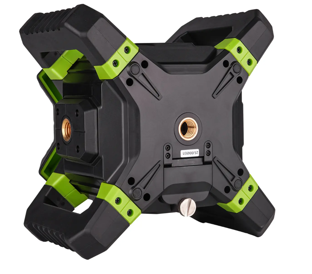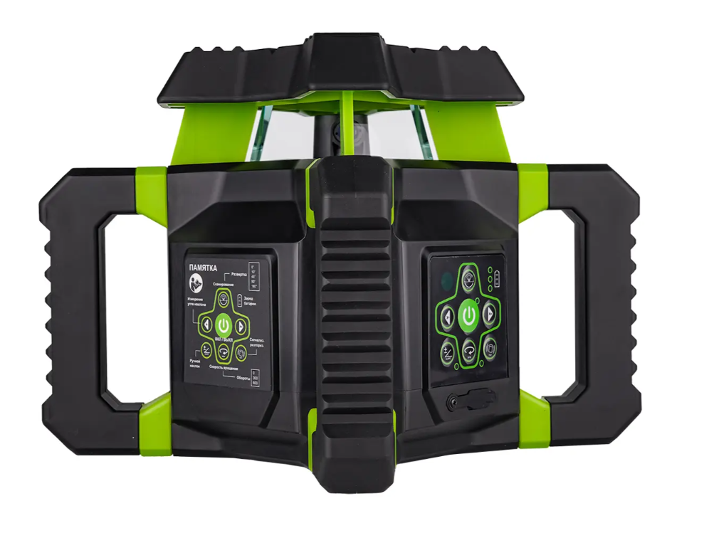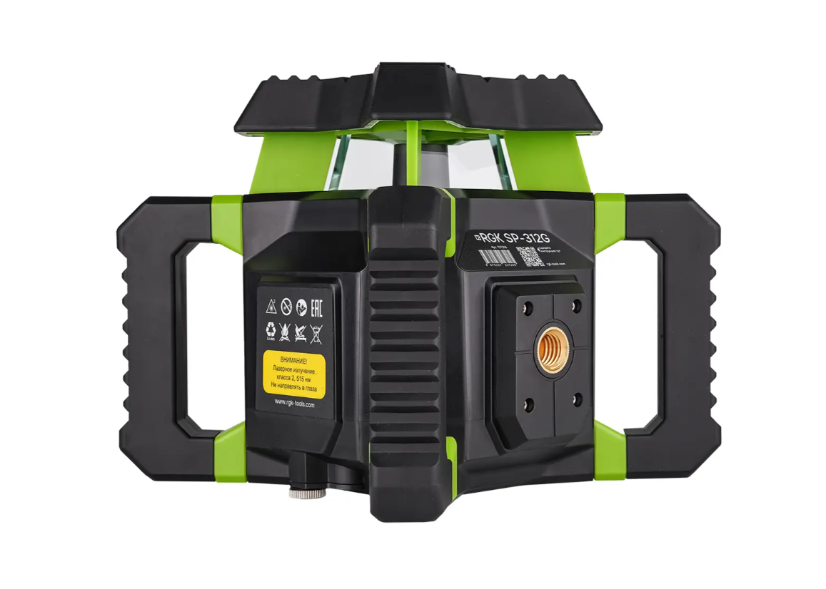 Для недопущения повреждения лазерной головки в процессе эксплуатации ротационный нивелир RGK SP-312G снабжен верхней крышкой, усиленной ребрами жесткости. 4 крупноразмерные ручки, позволяющие удобно переносить и устанавливать прибор, выполняют роль дополнительной защиты от механических воздействий. Благодаря параллельной конструкции они могут применяться как опора при использовании изделия для проецирования вертикальной плоскости, с установкой на грунт или любую поверхность. Также предусмотрена возможность крепления изделия на штативе, для чего на корпусе имеются два перпендикулярных винтовых крепления.