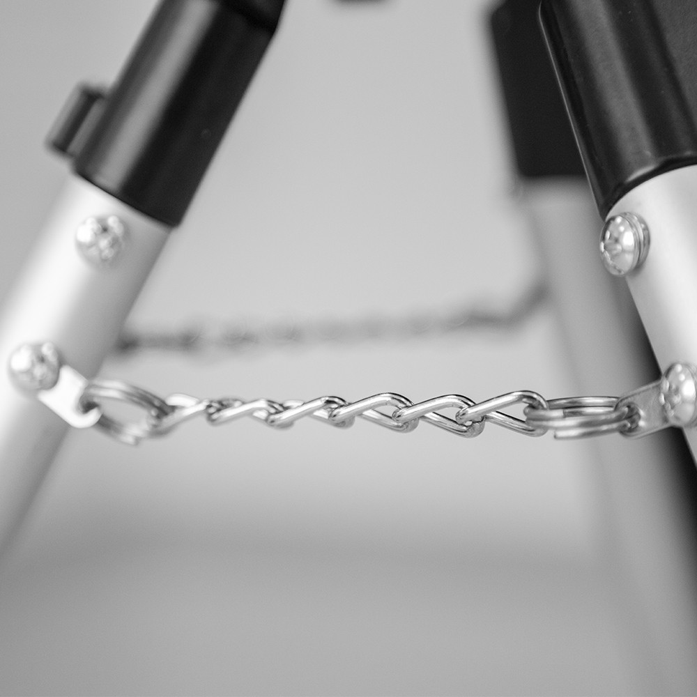 Наличие даже минимального отклонения может привести к искажениям измерений или разметки. Для предотвращения таких ситуаций телескопические ножки штатива GEO XL оснащены стопорными цепями.