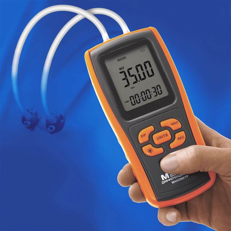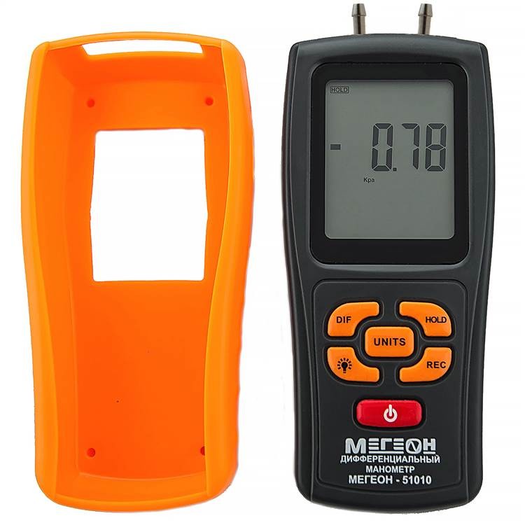Для удобства использования манометр имеет крепление для штатива. Это позволяет установить его на статичной поверхности и проводить точные измерения без помех. Защитный чехол обеспечивает сохранность прибора от механических повреждений и загрязнений.