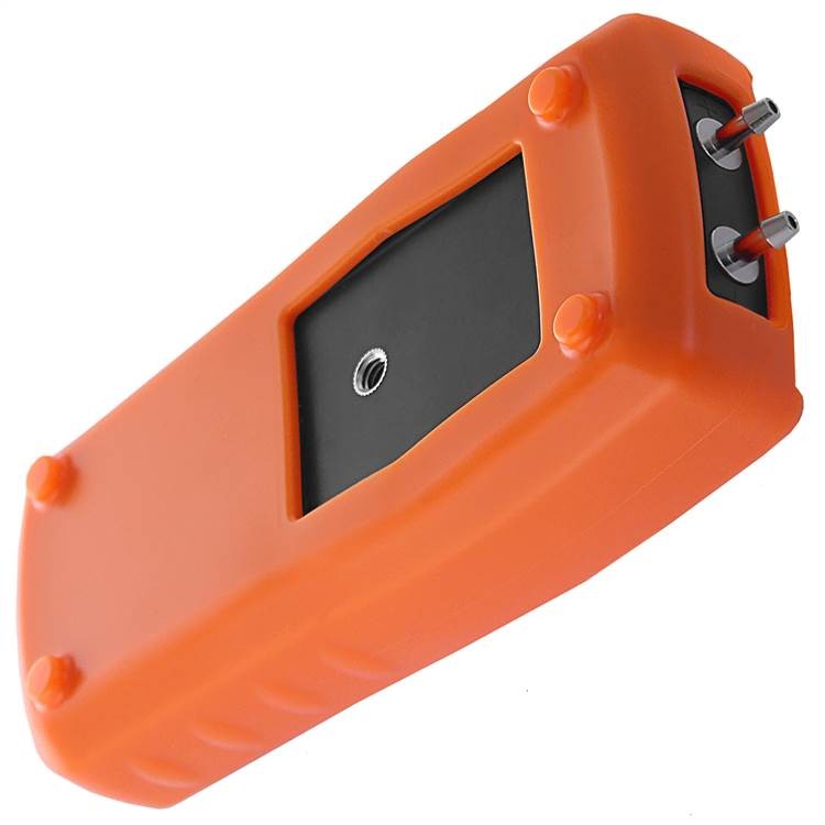 Манометр оснащен креплением для штатива, которое позволяет удобно зафиксировать его на месте проведения измерений. Защитный чехол предотвращает повреждение прибора и загрязнение его частей.
