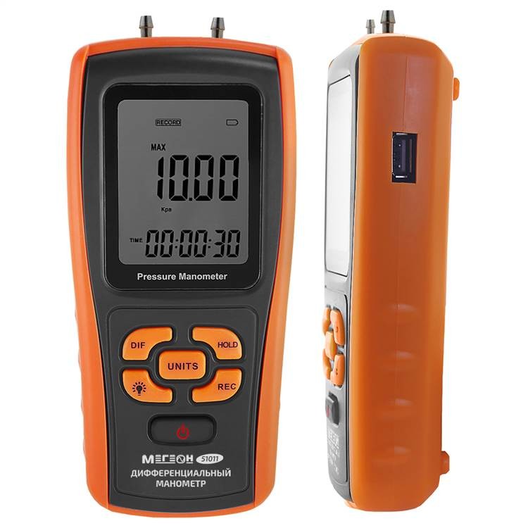 Основные характеристики Дифференциального Цифрового Манометра МЕГЕОН 51011 включают в себя большой ЖК-дисплей с функцией подсветки, что обеспечивает удобство использования в условиях плохой освещенности. Функция удержания данных позволяет сохранить измеренные значения для последующего анализа, а индикатор заряда батареи сигнализирует о необходимости ее замены.