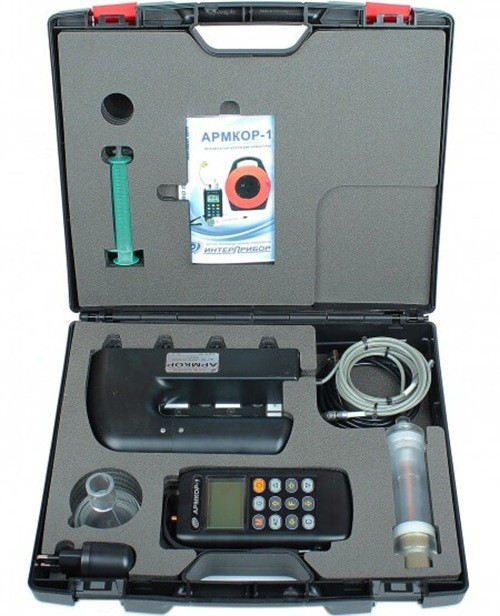 АРМКОР-1 предназначен для оперативного контроля степени коррозии арматуры в бетоне методом анализа потенциала микрогальванической пары (датчиком потенциала) и измерения удельного электрического сопротивления в бетоне (датчиком сопротивления).