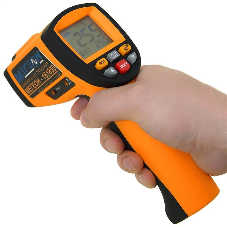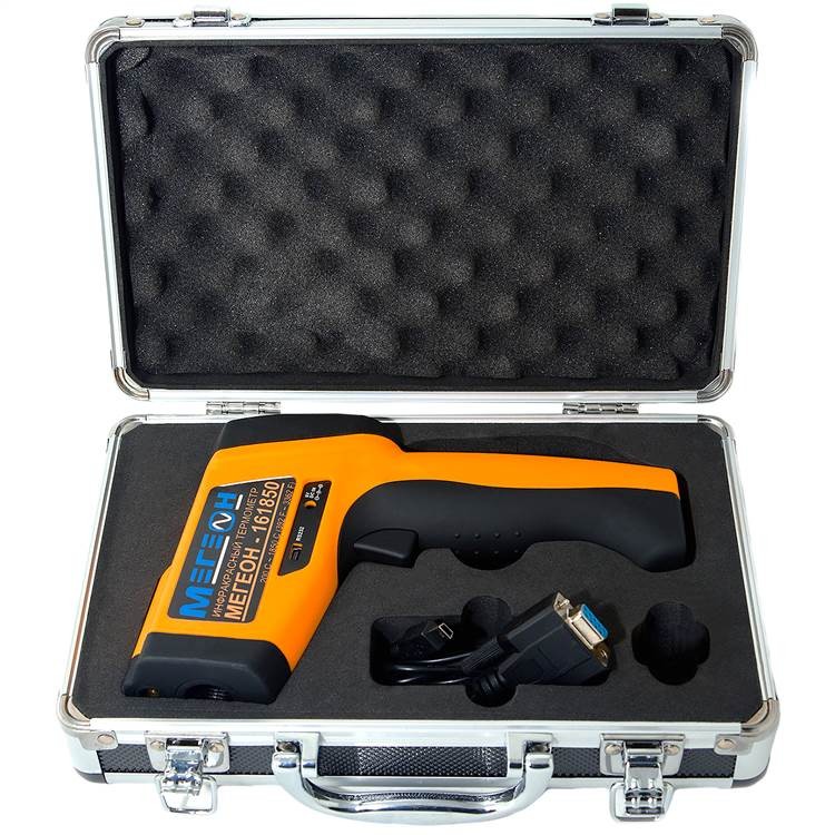 МЕГЕОН 161850 оснащен автоматическим выбором диапазона измерения, что упрощает процесс настройки и обеспечивает оптимальные условия для проведения измерений. Жидкокристаллический дисплей с яркой подсветкой гарантирует удобство использования прибора в любых условиях освещения, а индикация заряда батареи позволяет контролировать состояние источника питания и своевременно производить его замену. Также пирометр оснащен лазерной указкой, что значительно упрощает процесс наведения прибора на объект измерения.
