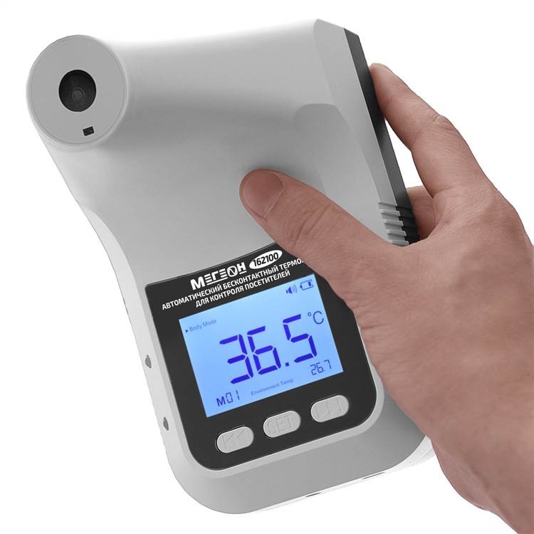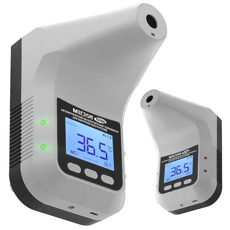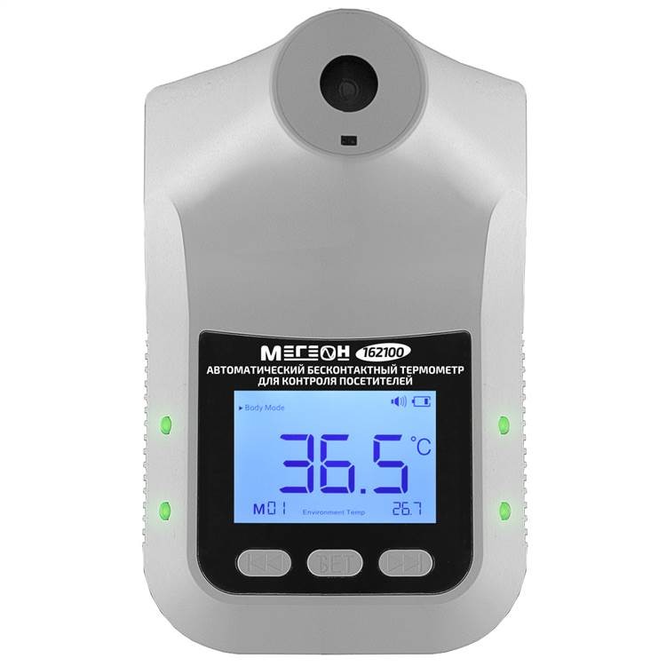 Автоматический бесконтактный термометр МЕГЕОН 162100 является идеальным решением для контроля температуры посетителей и обеспечения безопасности на объектах различного типа. Устройство оснащено большим ЖК-дисплеем с цветной подсветкой, которая облегчает считывание показаний даже при плохом освещении.