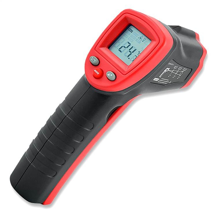 Среди основных особенностей термометра следует отметить лазерный целеуказатель, который облегчает наведение на измеряемый объект и повышает точность измерений. Также стоит отметить функцию удержания показаний температуры, которая позволяет зафиксировать полученное значение на дисплее для удобства его считывания.
