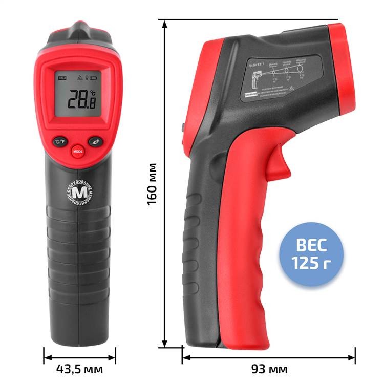Бесконтактный термометр (или пирометр) Мегеон 16400 является высокоточным и надежным прибором для измерения температуры разнообразных объектов. Он обладает широким диапазоном измерений от -50 до 380 градусов Цельсия, что позволяет использовать его для измерения температуры в различных условиях и сферах деятельности, от бытовых до промышленных.