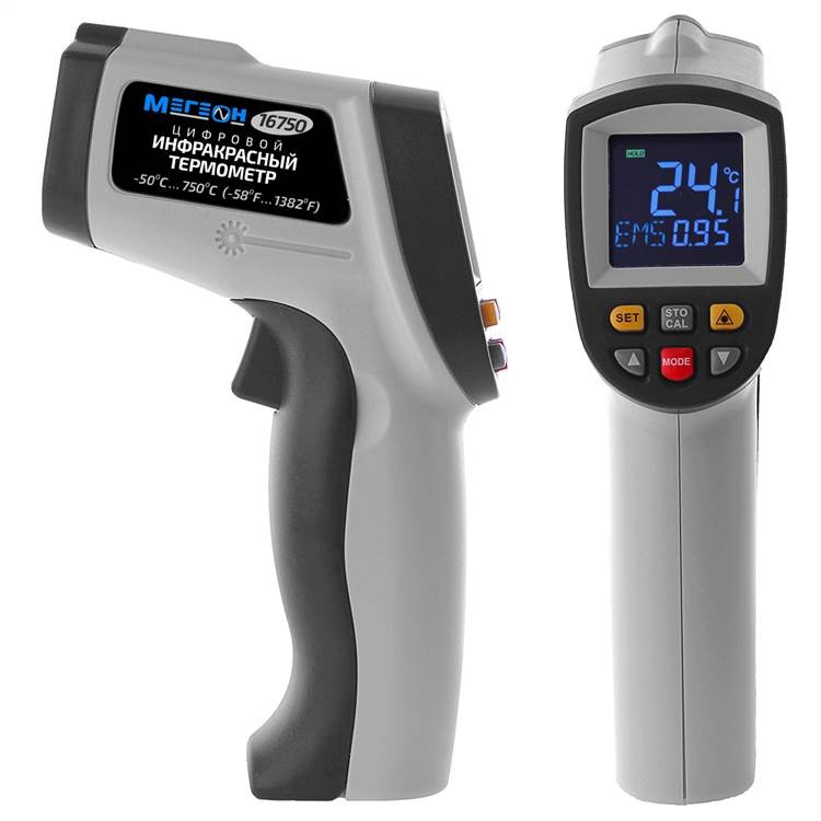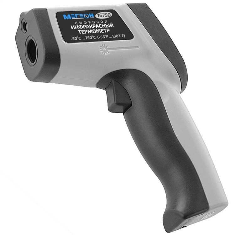 Инфракрасный термометр с цветным дисплеем МЕГЕОН 16750 представляет собой компактный и удобный инструмент для измерения температуры объектов на расстоянии. Диапазон измерения температуры составляет от -50 до 750 градусов Цельсия, что позволяет использовать его в различных сферах, включая промышленность, научные исследования и бытовую эксплуатацию.