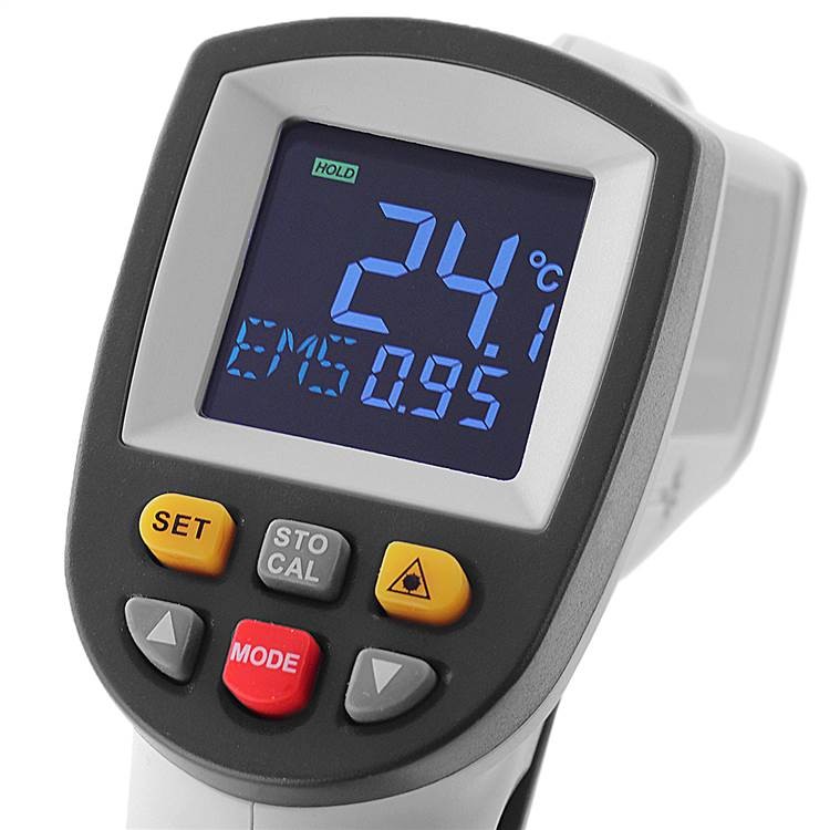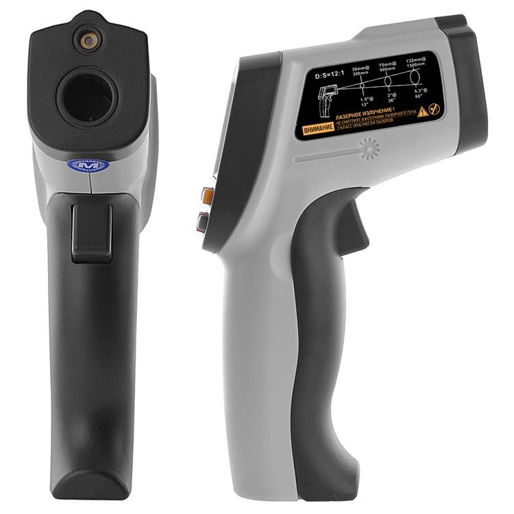Для точного наведения на объект измерения используется многоточечный лазерный целеуказатель. Оптическое разрешение 12:1 позволяет производить точные измерения на больших расстояниях, а настраиваемый коэффициент излучения в диапазоне от 0.1 до 1.0 позволяет учесть особенности поверхности объекта и скорректировать показания температуры. Функция удержания показаний упрощает считывание результатов и исключает ошибки.