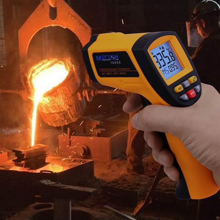 Пирометр оснащен лазерным целеуказателем и изменяемым коэффициентом излучения. Это делает процесс измерения температуры более удобным и точным. МЕГЕОН 16900 является надежным и функциональным инструментом для измерения температуры в различных условиях.