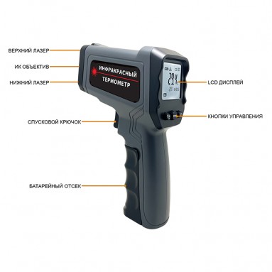 Пирометр снабжен удобным чехлом для хранения и переноски.