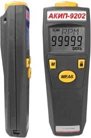 Доп. режимы (АКИП-9202): контактных измерений частоты вращения до 25.000 об/мин, скорости линейного перемещения до 2500 м/мин, счётчик оборотов
