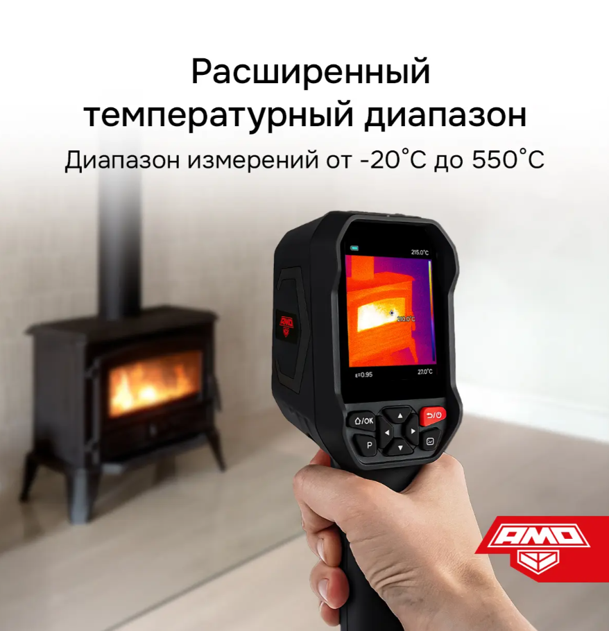Тепловизор AMO T810 предназначен для бесконтактного измерения температуры и визуализации тепловых полей. Прибор позволяет обнаруживать перегрев, утечки тепла, неисправности в электрических цепях, проблемы в системах отопления и вентиляции. Он незаменим для инженеров, электриков, энергоаудиторов, специалистов по обслуживанию оборудования и строителей, которым требуется быстрая и точная диагностика без разборки узлов и остановки процессов.