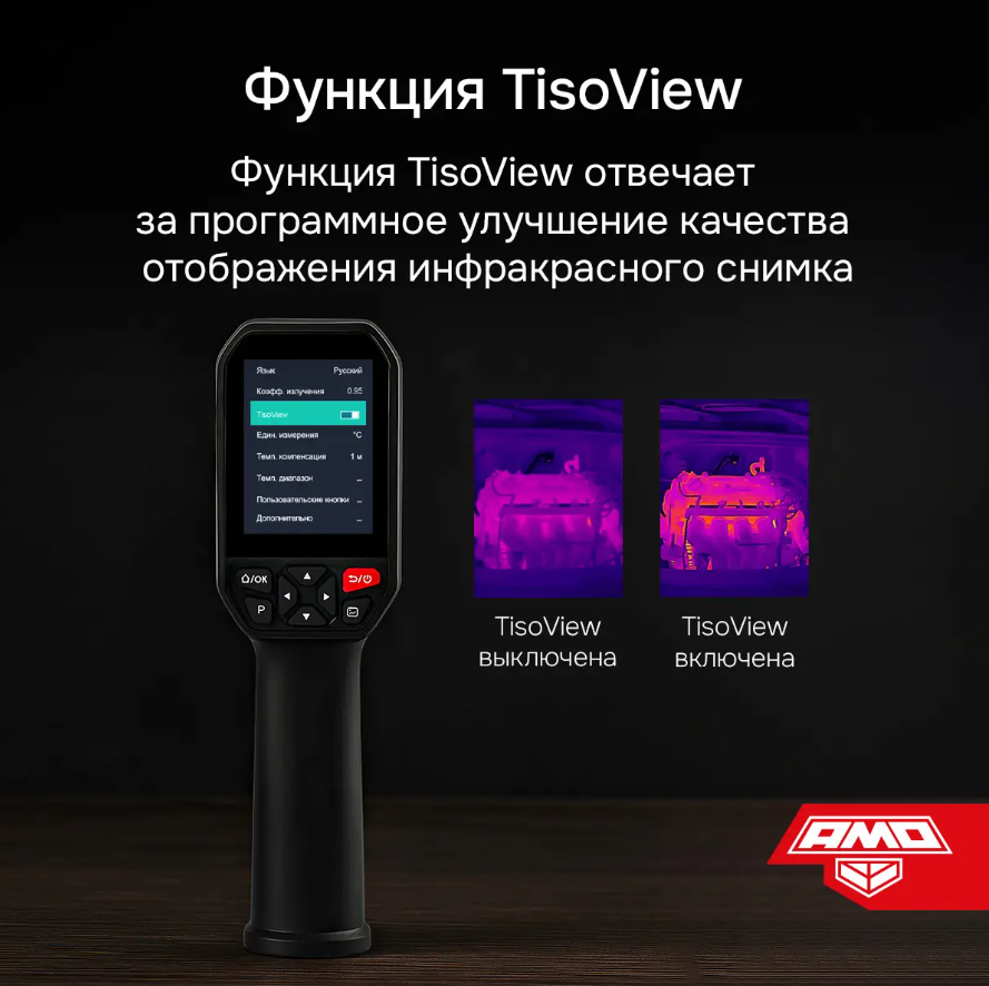 - Функция TisoView позволяет получать высокоинформативные ИК изображения, автоматически повышая их качество встроенными программными средствами.