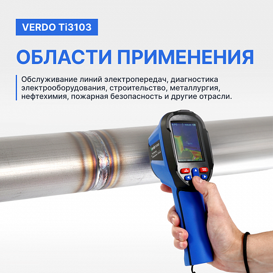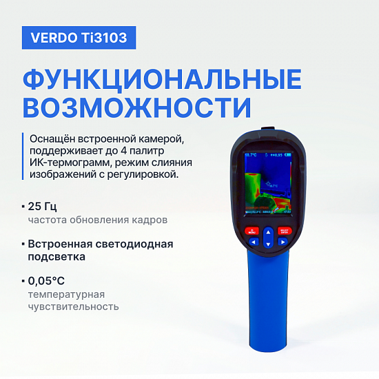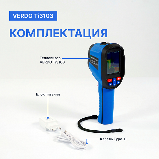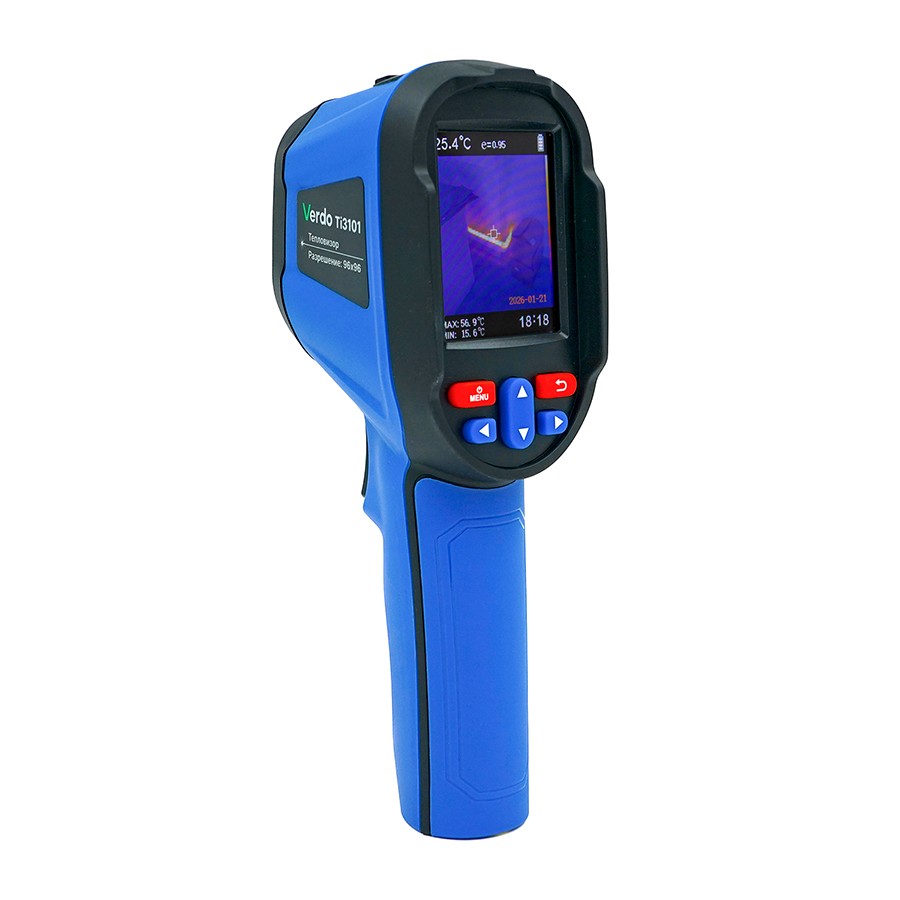Тепловизор VERDO Ti3103 прибор представляет собой инфракрасную камеру, которая объединяет измерение температуры поверхности и тепловизионное изображение в режиме реального времени.